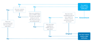 If you’ve made a prior claim, check whether it was submitted within the three-year window. To do this, calculate the last day of the claim notification period (six months from the end of your accounting period), and count back three years. If your last claim falls within this timeframe, you may not need to notify again. Be mindful of transitional rules, depending on how your previous claim was submitted. If you’re in doubt or need clarification on whether or not the notification rules apply, please get in touch and ensure you don’t miss out.